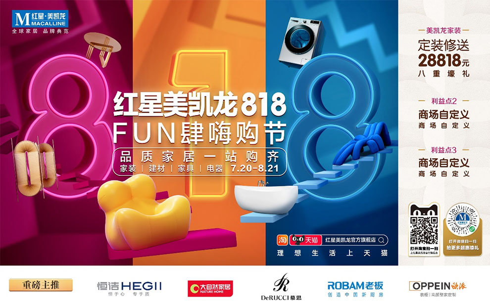 據(jù)介紹,紅星818FUN肆嗨購節(jié)將聚焦品質(zhì)消費,整體營銷投入高達20億,將打造為大力度、全品類、好品牌的家居購物節(jié)。全國門店,周周有活動,并通過線上線下同頻共振,從流量端、服務端到產(chǎn)品端真正滿足消費需求。